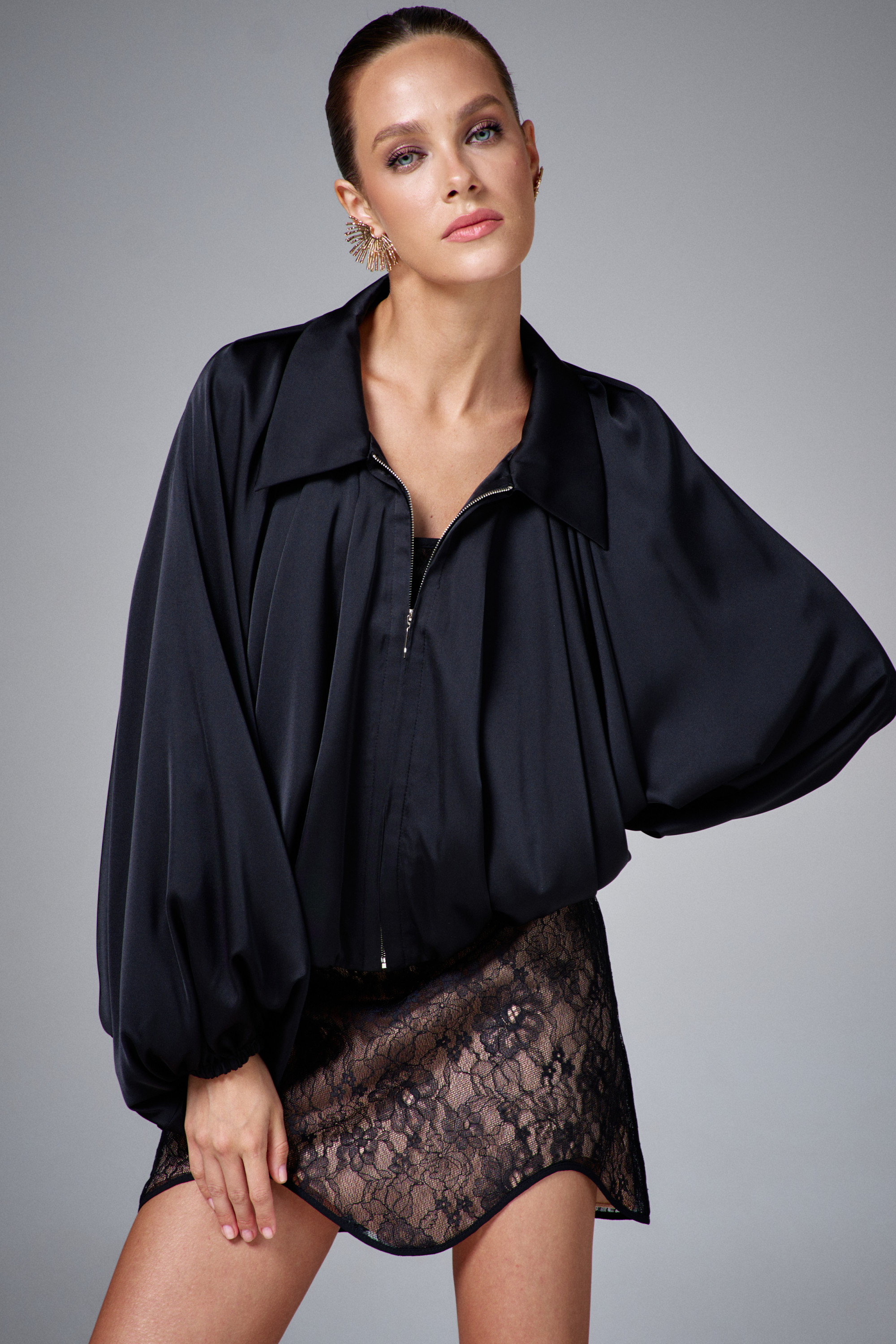 Блузка женская из блузочной ткани, прямого силуэта, с застежкой по переду на разъемную молнию.