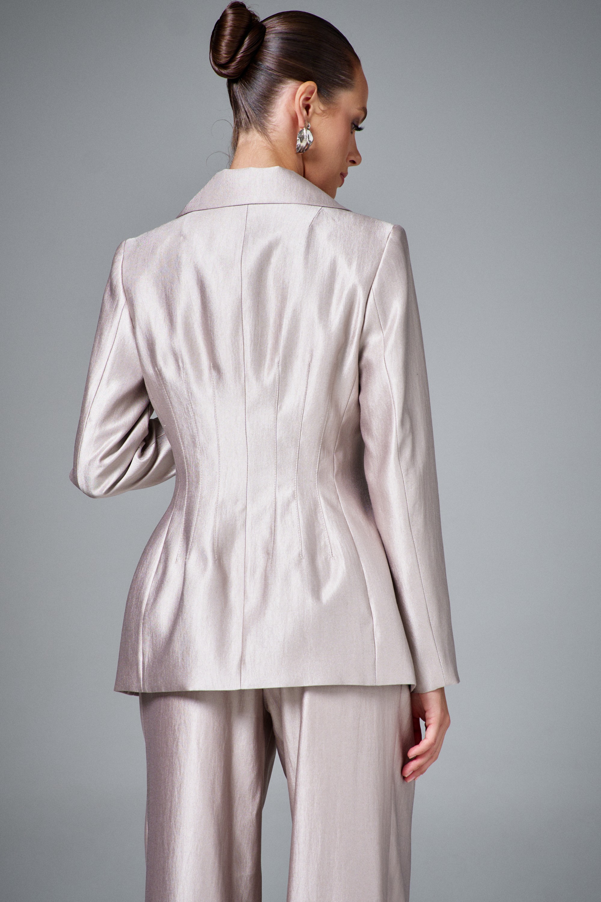 Воротник отложной с отворотами из подбортов. Жакета, на подкладке, с плечевыми накладками.