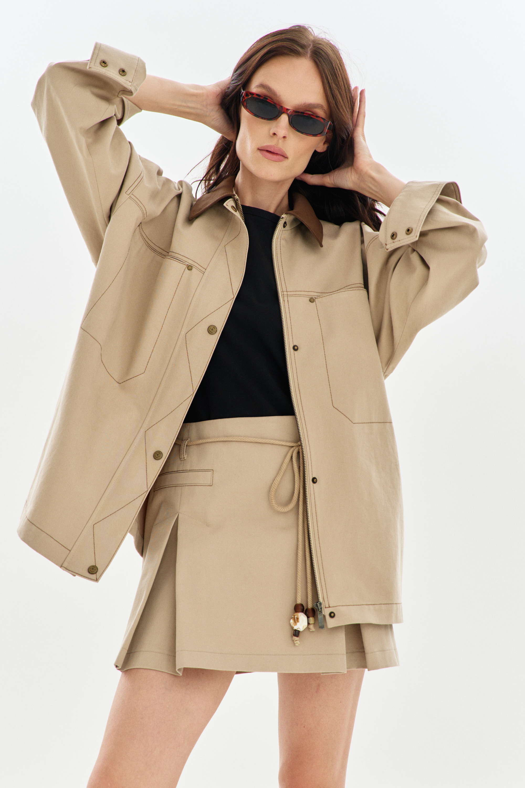 ткани, прямого силуэта, с центральной застежкой на разъемную молнию.